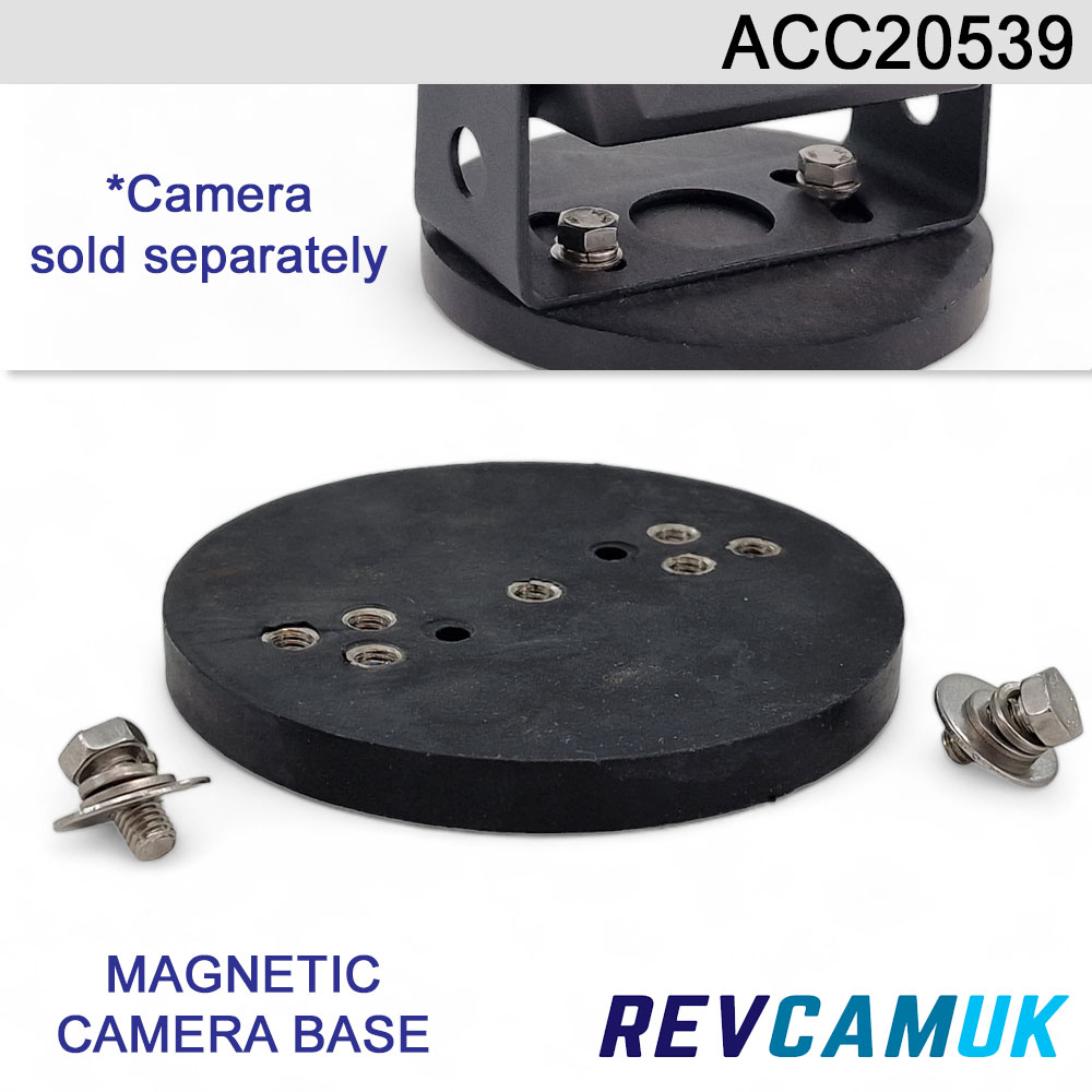 These magnetic mounts have a variety of spaced out holes with bolts and we find they fit most bracket based reversing cameras. These are ideal for temporary mounting a camera and we mainly sell these to farmers who may wish to use various bits of equipment with the same camera system at different times of the year. The magnet is very strong and we find these don't come away, even at motorway speeds when mounted on the roofline. |