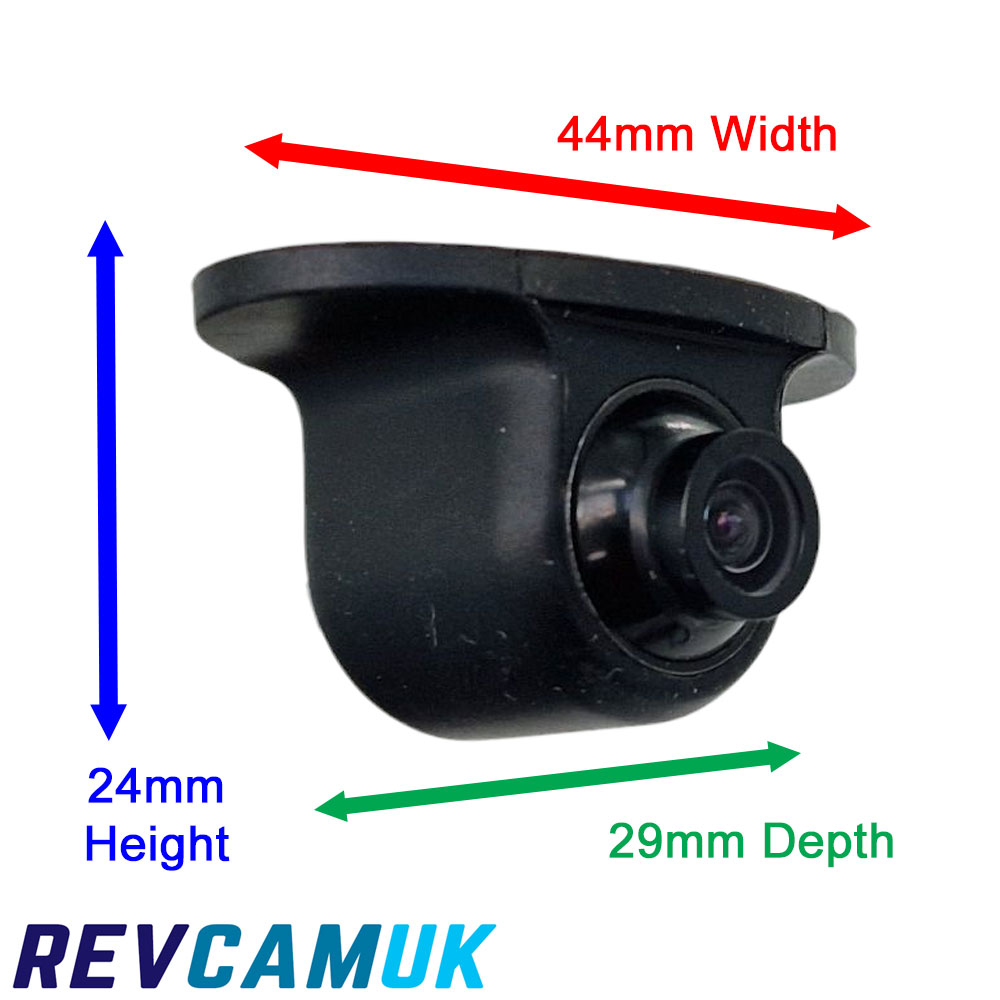 CAM502 small rubber body adjustable ball reversing camera dimensions image showing 44 mm width, 24 mm height and 29 mm depth.