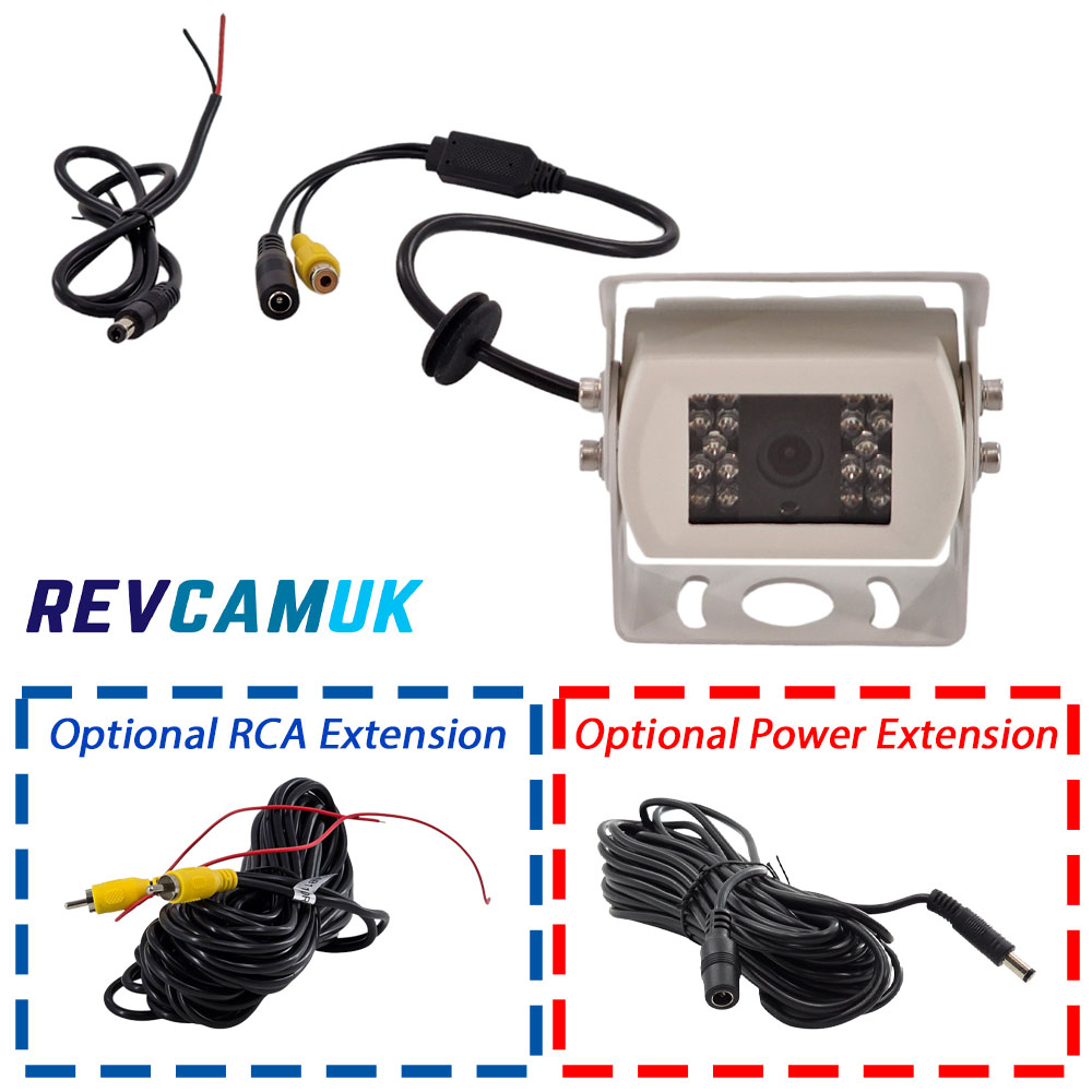 CAM062 - White stainless steel bracket reversing camera with RCA/Phono connectors
