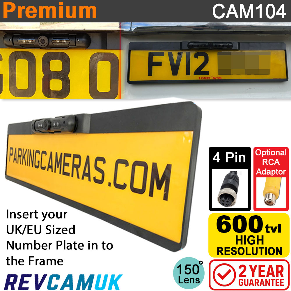 About the adjustable number plate frame reversing camera with night vision IR LED'sOur very popular number plate frame reversing camera is fitted with a high-resolution PC1058 600tvl Image Sensor, IR night vision LED's, and a quality aspheric extra wide angle lens. Unbeatable reliability, simple to fit to the vehicle, looks great, adjustable, and a great image quality. Many of our regular fitter customers love this camera; some fit almost nothing but this model. Excellent Image Quality - Thanks to the high-quality modern PC1058 600tvl high-resolution image sensor installed, coupled with an excellent Aspheric lens you can expect a sharp, clear image, with good colour replication. IP69K Waterproof - With the highest standard in water ingress protection, this reversing camera is sure to withstand anything the Great British weather chooses to unleash on it. Similar looking cameras tend to fill auto electricians with a sense of dread, as similar barrel based cameras have an awful reputation for leaking. Not this one! These cameras have been impeccable. Extra Durable and Reliable - Not to be confused with cheaper imitations. This model comes from one of our best rated manufacturers for reversing cameras. Fitting one of these cameras to your vehicle will give you trouble-free ownership. Adjustable Tilt Angle - There are two small screws to the front of the camera, which when turned anti-clockwise allows the camera barrel to rotate up/down. Once you have the perfect view, simply tighten back up to lock. The camera barrel can even be removed and refitted upside down, so that the camera can be at the bottom of the number plate instead of the top. Night Vision IR LED's - It is unusual for a numberplate camera to have night vision, this camera is fitted with 4x high powered Infra Red LED's, which provides the camera with light to keep you safe at night time. The light is invisible to the human eye, so no worries about blinding following traffic. Built In Microphone - The camera is fitted with a microphone, which may be useful to some customers who want to hear instructions from people close to the camera. Please be aware that to hear the microphone, you need to ensure that your Monitor has a built-in speaker. Extra Wide Aspheric Lens - 150 degrees field of view, without the fish bowl effect, thanks to the really high quality Aspheric lens installed in this reverse camera. 4 Pin Connector / Optional RCA Phono Adaptors - The camera uses the most popular 4 pin screw connector to take Video Signal, Audio from the microphone, and Power. Should you wish to convert this to RCA Phono Connection e.g. for an RCA Monitor or Stereo Headunit e.g. Sony/Kenwood/Pioneer you can order a discounted bundle set which has our 4 pin to RCA Adaptor + Power Wire with inline fuse + RCA Coupler. Easy to Fit - One of the most widely reported feedback we get from customers about this camera is that it is so easy to fix to the vehicle thanks to it re-using the original fixings for the numberplate. Check out our video below to see what is involved in fitting. How to fit the number plate frame reverse camera to your vehicleThis camera is very easy to install. 1. Unscrew your existing number plate from your vehicle 2. Slide the number plate in to the new number plate frame camera 3. Fix the number plate + frame camera to the vehicle using the original screws 4. Make a small channel on the number plate light to allow the wire to enter the vehicle without getting crushed (or use the attached grommet). See our video below to see the installation of the number plate reversing camera. For best viewing, ensure the playback quality is set to HD. Download our fitting guide for the number plate frame camera |
