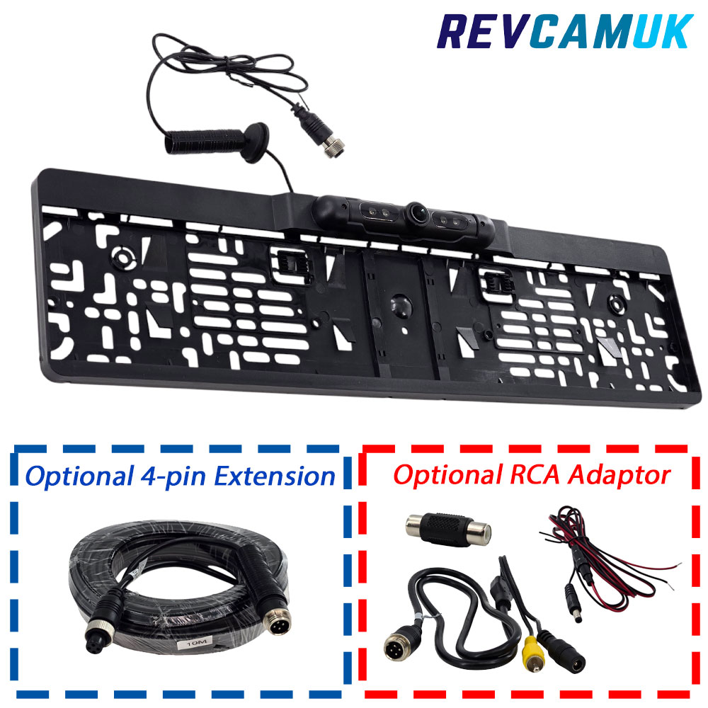 CAM104AHD – 1080P AHD Number Plate Frame Reversing Camera with Night VisionThis is our CAM104AHD, a high-definition number plate frame reversing camera fitted with a premium Galaxy Core 2053 1080P AHD image sensor for a crisp, detailed picture. It combines a number plate frame design with an adjustable tilt mechanism so you can fine-tune the viewing angle, a high-quality 150° aspheric wide-angle lens and built-in IR LEDs for night vision. It works well on almost any vehicle with a standard number plate, including cars, vans, motorhomes, luton vans and pick-up trucks. If the vehicle has a UK or EU standard size number plate, this camera will fit. This camera must be used with an AHD-compatible monitor and comes with our two-year Reversing Cameras UK guarantee. Key Features1080P AHD Galaxy Core 2053 Image Sensor - The Galaxy Core 2053 1080P AHD sensor provides a sharp, genuinely high-definition image with very good colour accuracy and clarity. It is a clear step up from standard-definition number plate cameras and suits customers who want a more modern, detailed picture. High-Quality 150° Aspheric Lens - The aspheric lens offers a wide 150° field of view without the over-the-top “fishbowl” distortion that some ultra-wide lenses suffer from. It gives excellent usable coverage behind the vehicle for everyday reversing and manoeuvring. Number Plate Frame Design - The camera is built into a neat number plate frame, helping it blend in around the plate area rather than looking like a bolt-on box. It is ideal where you want a tidy, integrated appearance. Superb Build Quality - Many number plate frame cameras on the market suffer from poor sealing and short lifespans. This model is different. Installers and auto electricians who have tried it have been pleasantly surprised by its robust construction, better sealing and consistent long-term reliability. Adjustable Tilt Mechanism - The camera angle can be rotated and locked, allowing you to set the most useful viewing angle for your vehicle. This is especially handy for number plate-level installs and situations where mounting height or lighting conditions vary. IP69K Waterproof Rating - Designed to withstand high-pressure washing, road spray and wet weather. IP69K is the highest level of water and dust ingress protection available, giving long-term durability in demanding conditions. Flexible Mounting Options - The frame can be mounted on vertical surfaces (such as rear walls) or horizontal surfaces (such as under number plate trims or crossbars). The internal camera module can be repositioned to ensure the image is the correct way up, regardless of how it is fitted. Night Vision IR LEDs - Unlike many number plate frames, this model includes infrared LEDs to illuminate the area behind the vehicle when light levels drop. The IR light is invisible to the human eye, but the camera uses it to help you reverse safely at night. Built-In Microphone - A useful extra if you are using a monitor with a built-in speaker, allowing you to hear what is happening behind the vehicle as well as see it. 4-Pin Aviation Connector with Optional RCA Adaptors - The camera uses the popular 4-pin screw connector for video, power and audio. If you need to connect to an RCA-based monitor or stereo head unit, a discounted adaptor bundle is available. Two-Year Reversing Cameras UK Guarantee - This camera includes our two-year Reversing Cameras UK guarantee for added peace of mind. AHD compatibility notice Please note: This is a high-definition 1080P AHD camera. It must be used with a monitor that supports AHD video input. Standard-definition CVBS screens will not display an image from this camera. If your monitor does not support AHD, you may prefer our standard-definition version: CAM104 – Standard Definition Number Plate Frame Camera Extension cable optionsWe offer extension cables from 1 m to 20 m to suit different installation routes. Selected lengths can be supplied with a slim 8 mm disconnect joint, positioned approximately 1 m from the monitor end, making routing through tight spaces such as grommets, headlining and factory trunking much easier. This joint is not waterproof and must remain inside the vehicle. RCA adaptor set optionIf your monitor or stereo head unit uses RCA inputs, an optional discounted adaptor bundle can be added. It includes: