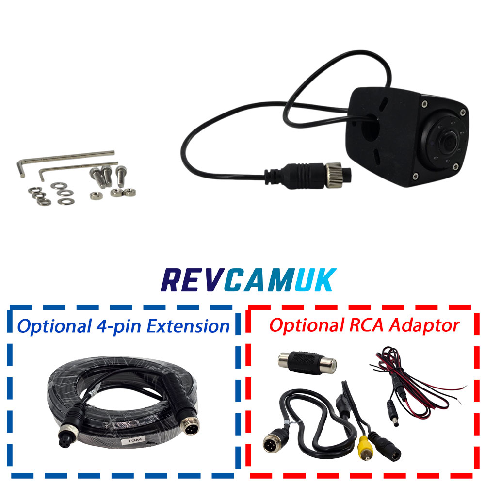 Compact Side View Vehicle Camera – Ideal for Cyclist and Pedestrian Safety – CAM219We were asked to stock a more compact side-view camera that would be harder to notice on a vehicle and would not look out of place when mounted on areas such as the front wing of a van to look backwards down the side. For this reason, we worked with one of the top-rated camera manufacturers we have used for many years to produce a small, discreet, reliable side camera. Good Image Quality - This camera uses the F53 image sensor, producing a high-resolution 700TVL image. If you are seeking the very best possible image quality, a larger Sony CCD sensor would perform slightly better. However, using a Sony sensor would require a physically larger camera body. This model is aimed at customers who prioritise compact size while still achieving a clear, usable image. If image quality is the main priority, please see our Sony CCD side view camera. Compact Size Side View Camera - The small physical size of this camera makes it particularly popular for vans, motorhomes, and larger vehicles where a discreet installation is preferred. It blends in well and does not look intrusive once fitted. IR Night Vision LEDs - Infra Red LEDs are fitted to allow the camera to operate in low-light and dark conditions. The IR light is invisible to the human eye but visible to the camera, helping maintain a usable image at night. 110° Wide Field of View - The camera provides an approximate 110-degree viewing angle, making it well suited for blind spot monitoring and detecting cyclists or pedestrians alongside the vehicle. Mirror Image Output - The camera outputs a mirror image to replicate what you would naturally expect to see in your vehicle’s side mirrors, making interpretation quick and intuitive. IP68 Waterproof Protection - Rated to IP68, this camera is designed to cope with harsh outdoor conditions and prolonged exposure to the Great British weather. Reduces Blind Spots / Improves Safety - The primary purpose of this camera is to reduce blind spots and improve safety for vulnerable road users such as cyclists and pedestrians, making it a popular option for commercial and fleet vehicles. Adjustable for Left Side, Right Side, or Rear ViewThe ball-mounted camera can be rotated to allow installation on the left-hand side, right-hand side, or rear of the vehicle. When fitting, ensure the green IR light sensor is positioned at the bottom of the camera so the image appears the correct way up on the monitor. Connector details and power information 4-Pin Connector Information This camera is supplied with a 4-pin screw (aviation-style) connector. This provides a secure, waterproof connection and is compatible with all of our 4-pin monitors and extension cables. The camera operates on 12V power, which is normally supplied directly from the monitor. Our 12V/24V monitors automatically regulate the voltage down to 12V for the camera. Optional 4-Pin to RCA Adaptor An optional 4-pin to RCA adaptor is available if you wish to connect this camera to an RCA-based monitor or a stereo head unit (for example Pioneer, Kenwood, or Sony). This adaptor can be selected from the drop-down options when ordering. |