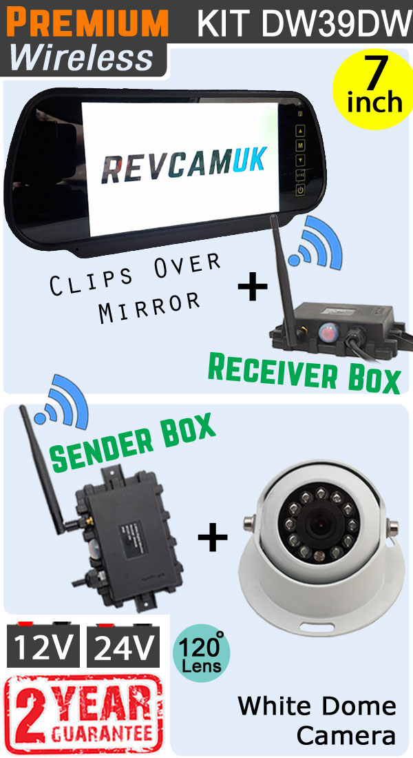 Sony CCD White Dome Wireless Reverse Camera System with 7" mirror monitor | DW39DW