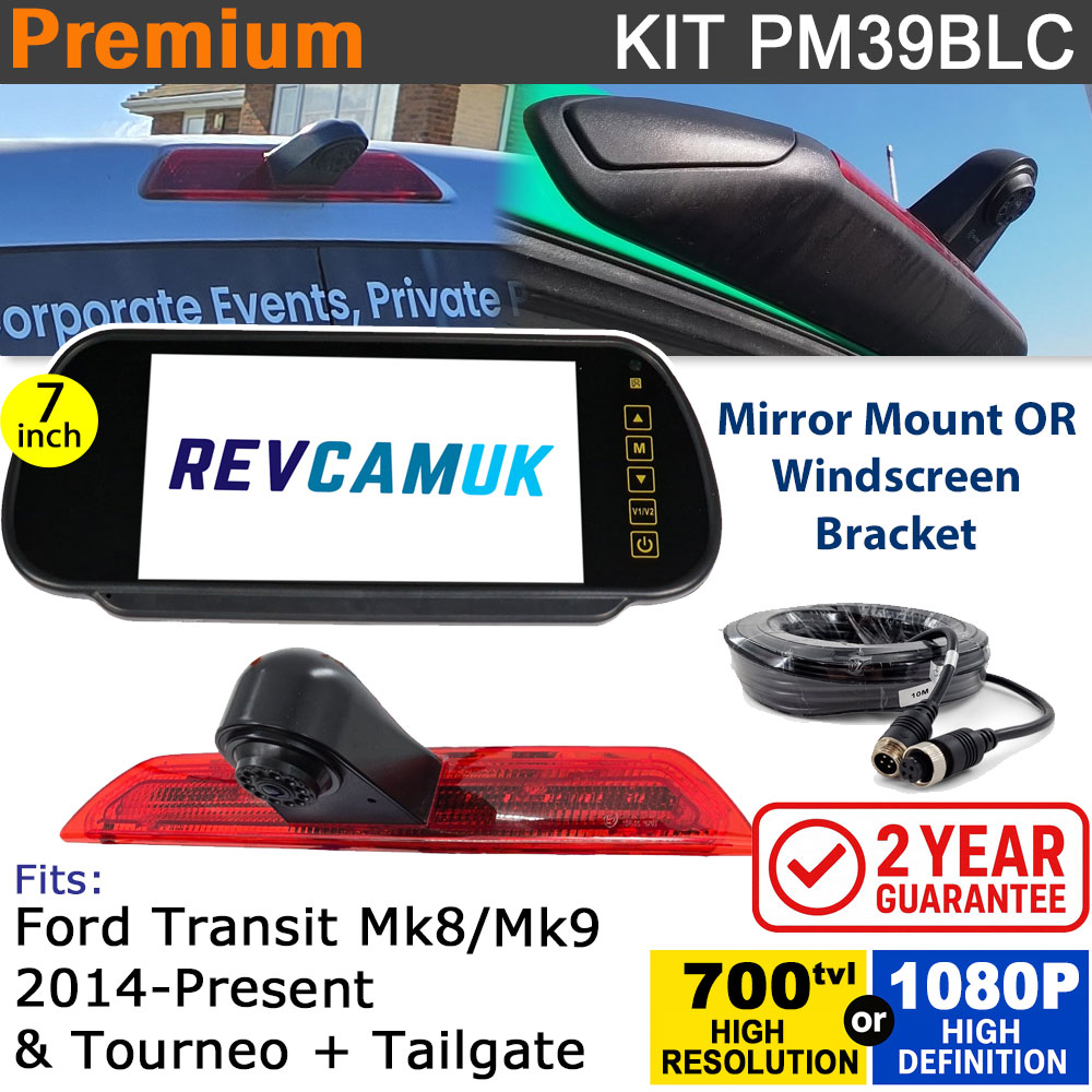 Ford Transit Mk8 (2014+) Brake Light Reversing Camera kit with 7" Mirror Display - PM39BLC