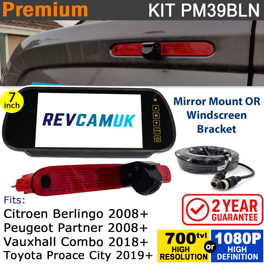Citroen Berlingo / Peugeot Partner / Vauxhall Combo / Toyota ProAce City Brake Light Reversing Camera kit with 7" Mirror Display - PM39BLN