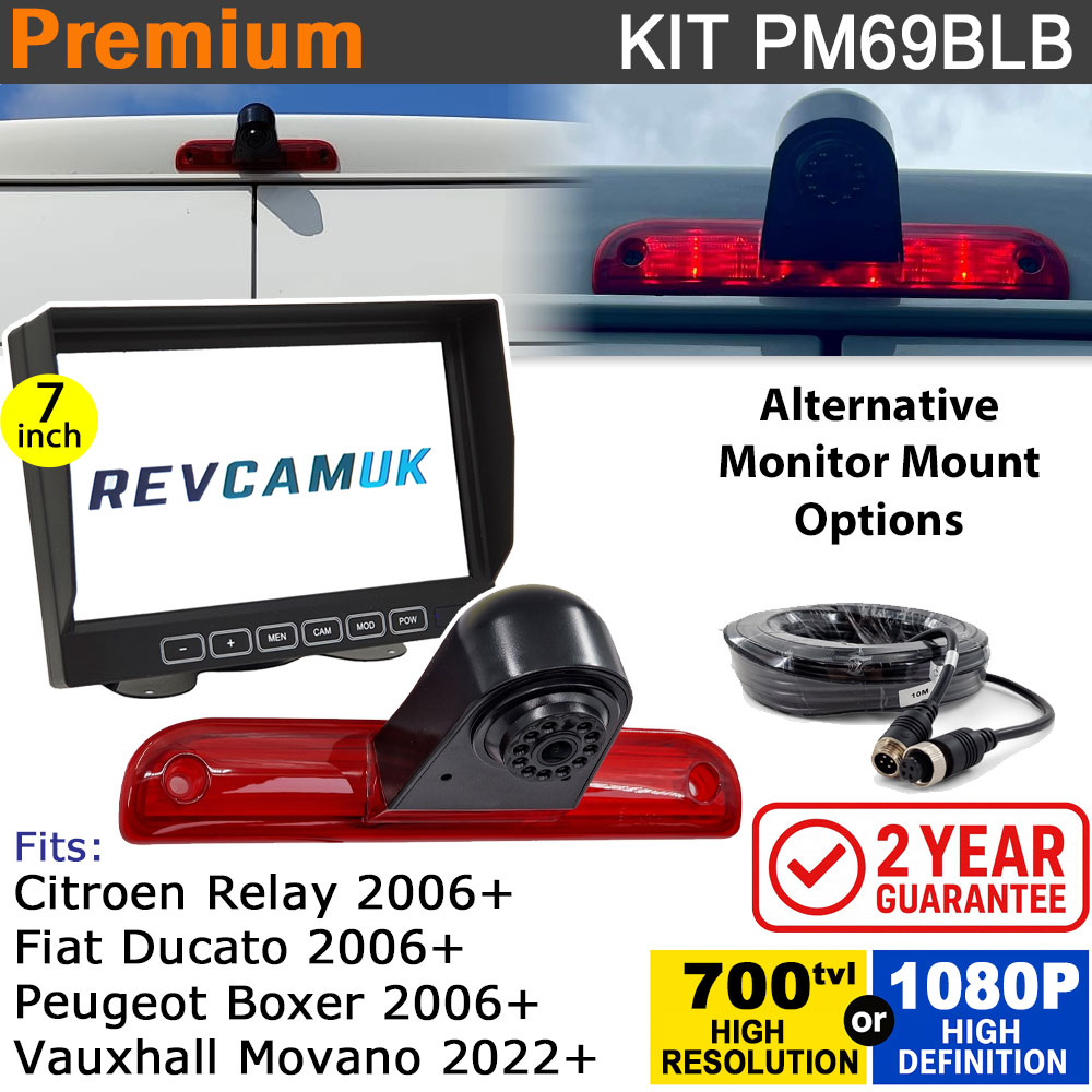 Fiat Ducato / Citroen Relay / Peugeot Boxer / Vauxhall Movano Brake Light Reversing Camera kit with 7" Monitor Display - PM69BLB
