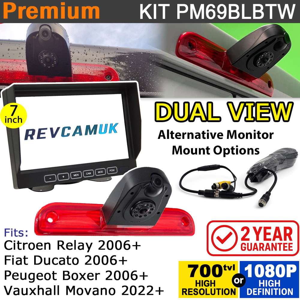 Fiat Ducato / Citroen Relay / Peugeot Boxer / Vauxhall Movano Twin Lens Brake Light Rear View + Reverse Camera kit with 7" Monitor Display - PM69BLBTW