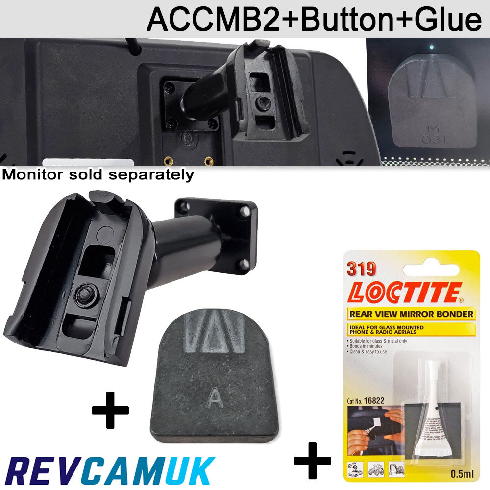 Universal "add a button" Swan neck bracket bundle for non clip-over mirror monitors - ACCMB2+Button+Loctite 319 Glue