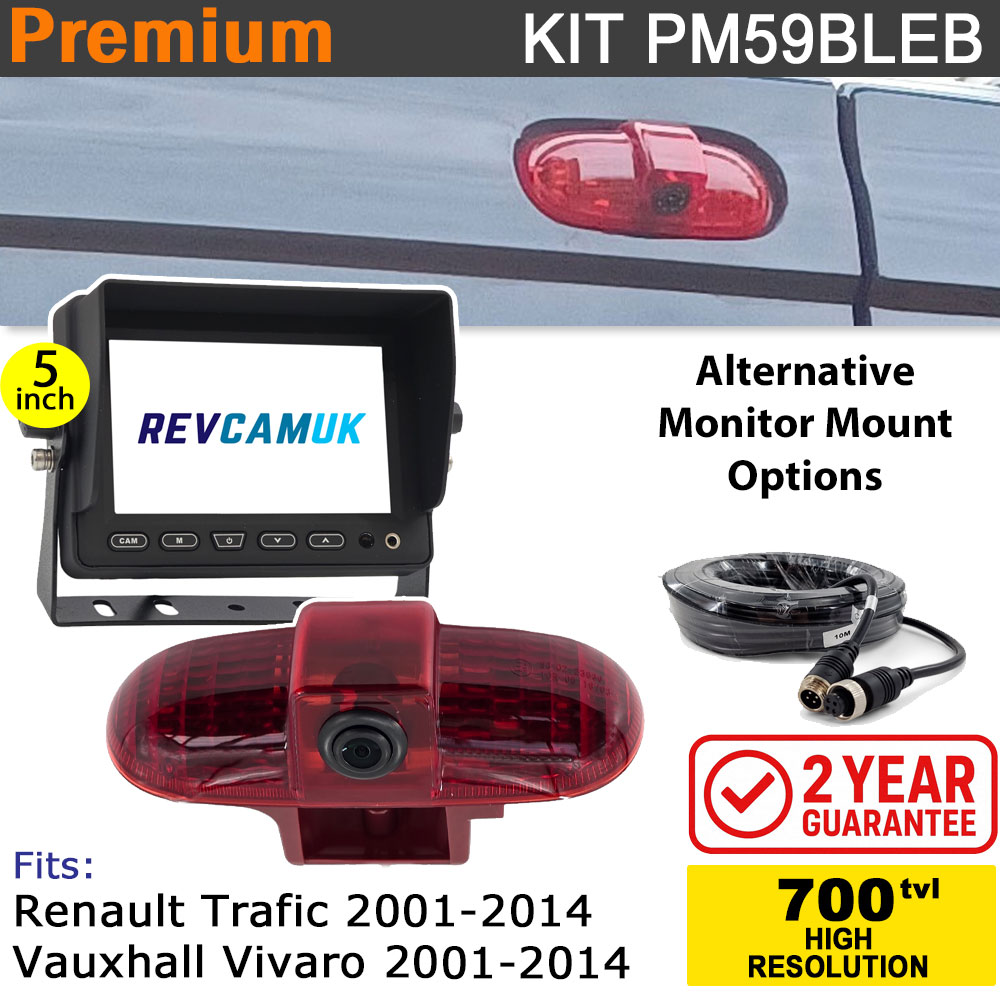 Vauxhall Vivaro / Renault Trafic (2001-2014) Brake Light Reversing Camera kit with 5" Monitor Display - PM59BLEB